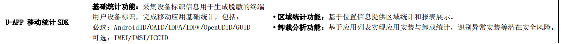 收集个人信息类型:设备信息(Android ID/IDFA/IDFV/OAID/OpenUDID/GUID/ IMEI/IMSI/ICCID)、网络信息、位置信息、应用列表